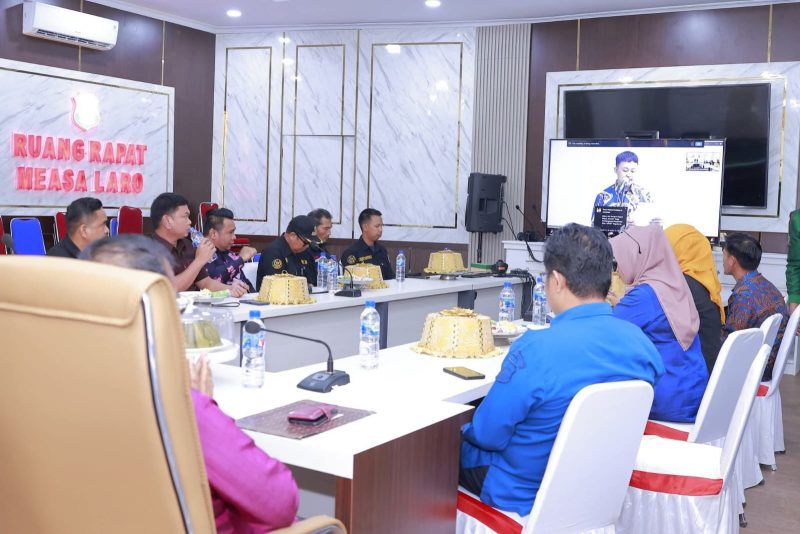 Kegiatan yang digelar melalui Zoom Meeting tersebut diikuti dari Ruang Rapat Measa Laro dan menghadirkan jajaran pejabat daerah, antara lain Asisten Bidang Administrasi Perekonomian dan Pembangunan, Asisten Bidang Administrasi Umum, Kepala Dinas Perindagkop dan UKM, Kepala Dinas PMD, serta perwakilan dari Asosiasi Pemerintah Desa Seluruh Indonesia (APDESI) Kabupaten Bombana.