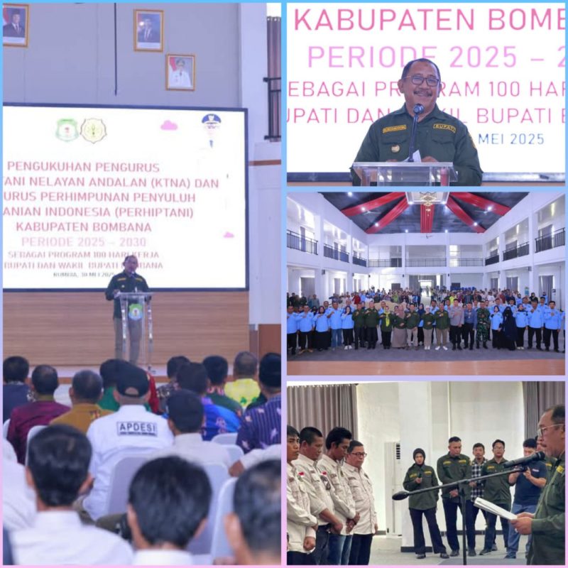 Bombana, rakyatnews.id – Pemerintah Kabupaten Bombana secara resmi mengukuhkan kepengurusan Kontak Tani Nelayan Andalan (KTNA) Kabupaten Bombana dalam sebuah acara yang digelar di Aula Tanduale, Kantor Bupati Bombana, Jumat, 30 Mei 2025. Pengukuhan ini menjadi langkah awal dalam memperkuat kemitraan strategis antara pemerintah daerah dan komunitas petani serta nelayan guna mewujudkan sektor pertanian yang maju dan berdaya saing.