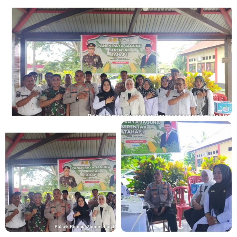Bombana, rakyatnews.id – Panen raya jagung serentak Tanam Jagung Program (TAP) 1 Tahun 2025 digelar secara hybrid dari Kazebo Polsek Rumbia, menghadirkan semangat baru bagi petani dan pemangku kepentingan di Kecamatan Rumbia, Kabupaten Bombana. Acara ini diikuti oleh Camat Rumbia, para Lurah, serta Kepala Desa setempat yang bergabung secara virtual melalui aplikasi Zoom dari pusat, Selasa, 26 Februari 2025.